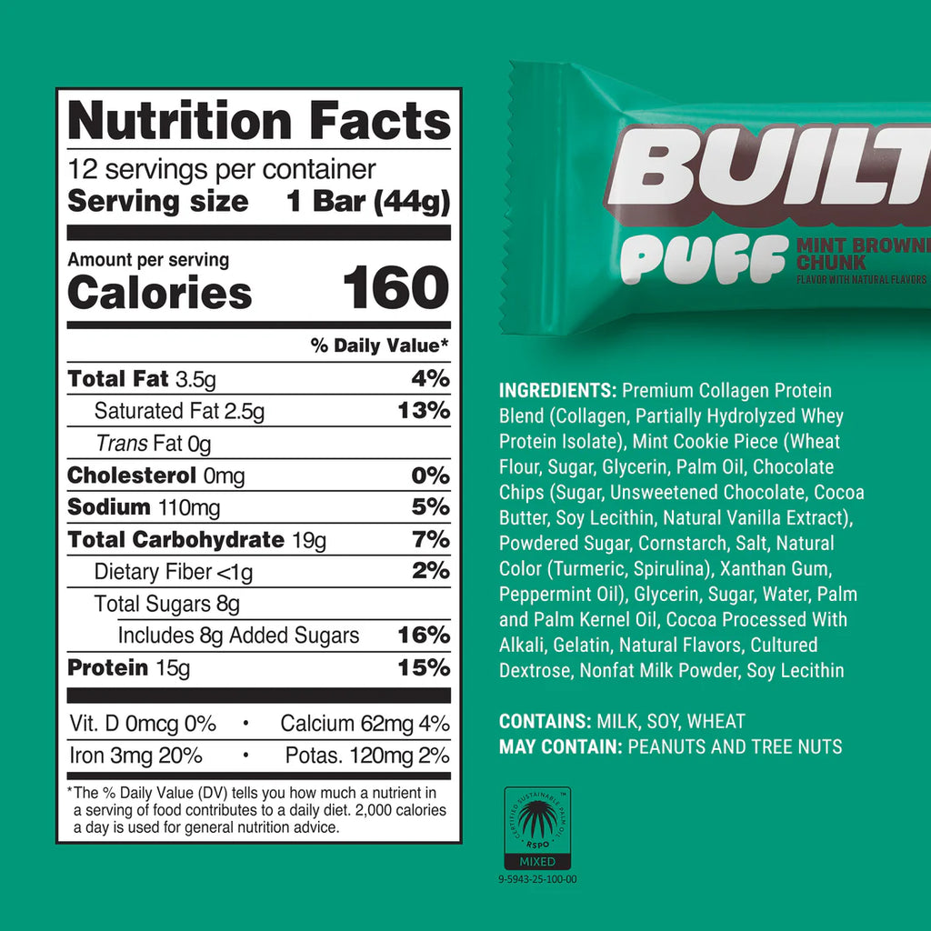 Premium Collagen Protein Blend (Collagen Peptides, Partially Hydrolyzed Whey Protein Isolate). Dark Chocolate (Sugar, Chocolate Liquor, Cocoa Butter, Milkfat, Soy Lecithin, Vanilla) Glycerin, Water, Sugar, Gelatin, Natural Flavor, Nonfat Dry Milk. Contains: Milk, Soy.ย