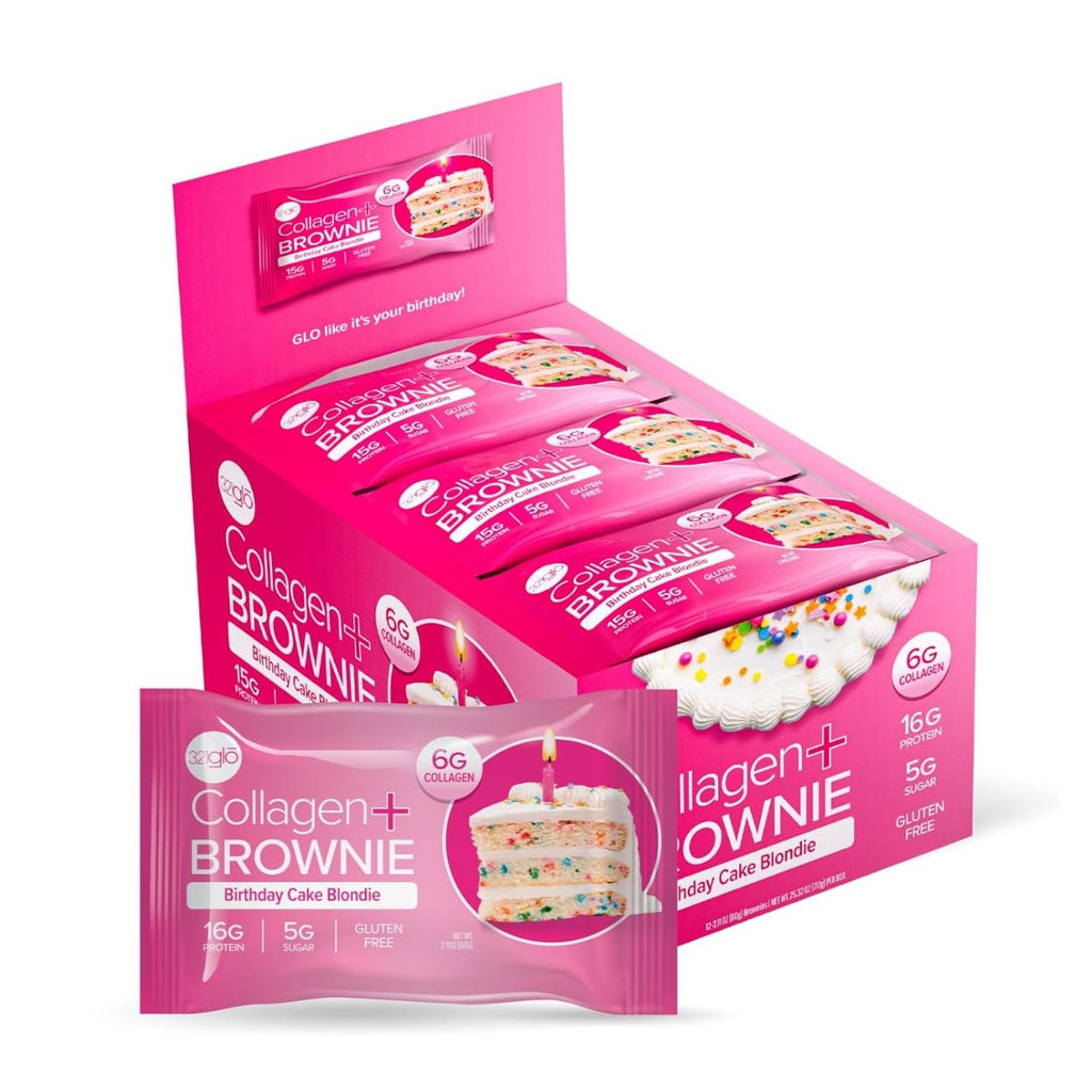 Enjoy the fun, sweet flavor of birthday cake in a soft, chewy blondie — now with a protein-packed boost. Our Birthday Cake Blondie Collagen+ Brownie delivers a smooth vanilla taste with colorful sprinkles and a satisfying texture that feels like a treat, without the guilt.