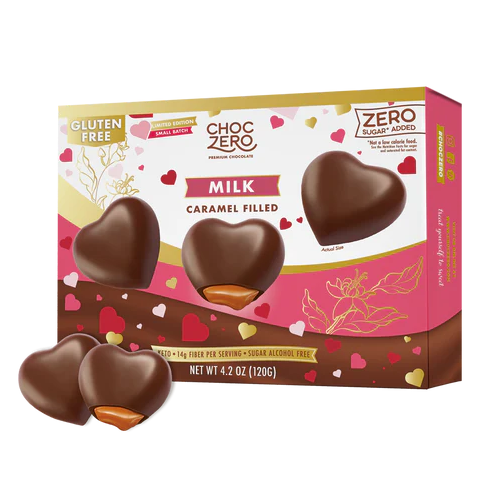 - A keto truffle: caramel filling inside no sugar added milk chocolates in the shape of hearts
