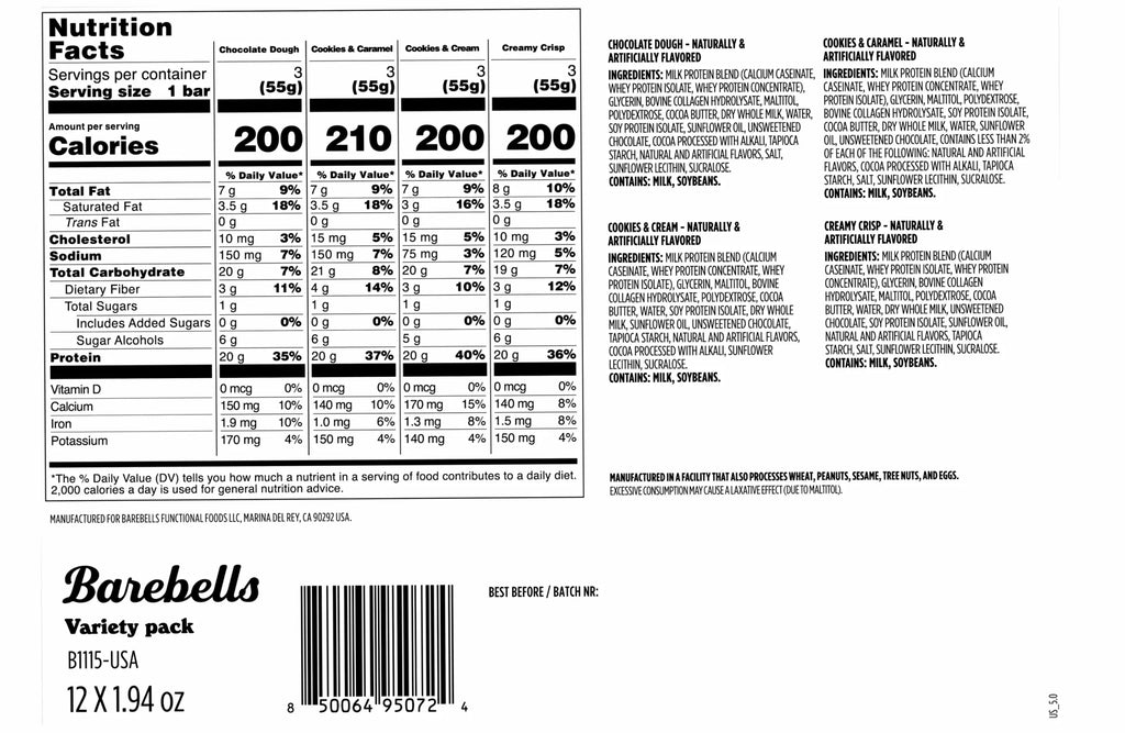 Example of Ingredients: (Cookies & Cream): Protein blend (calcium caseinate, whey protein concentrate, whey protein isolate), Glycerin, Maltitol, Hydrolyzed collagen, Polydextrose, Cocoa butter, Soy protein, Whole milk powder, Water, Sunflower oil, Cocoa mass, Artificial flavours, Cocoa (processed with alkali), Tapioca starch, Sunflower lecithin, Natural flavour, Sucralose.