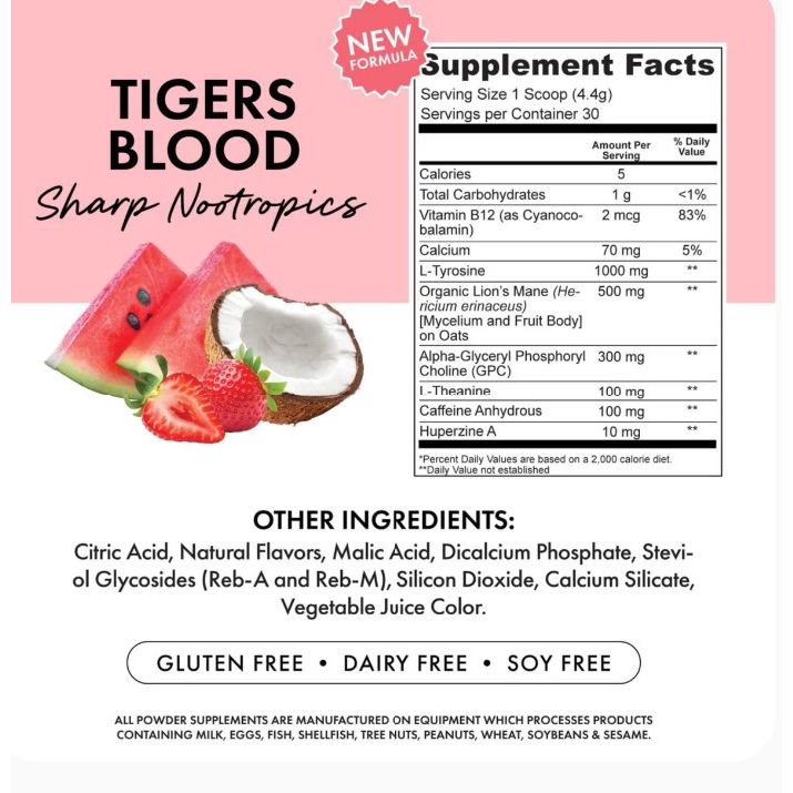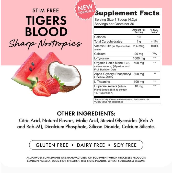 L-Tyrosine: Enhances cognitive function, memory, and focus. Helps the body manage stress and mental fatigue.